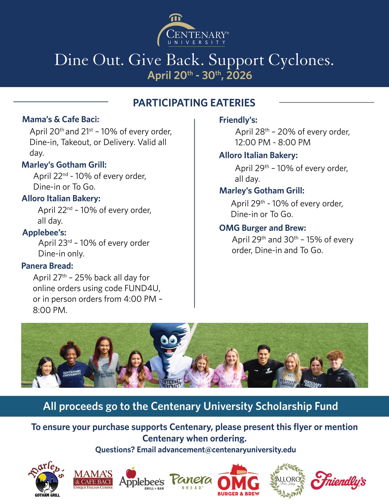 Dine out. Give back. From April 20th–30th, support Centenary University [...]