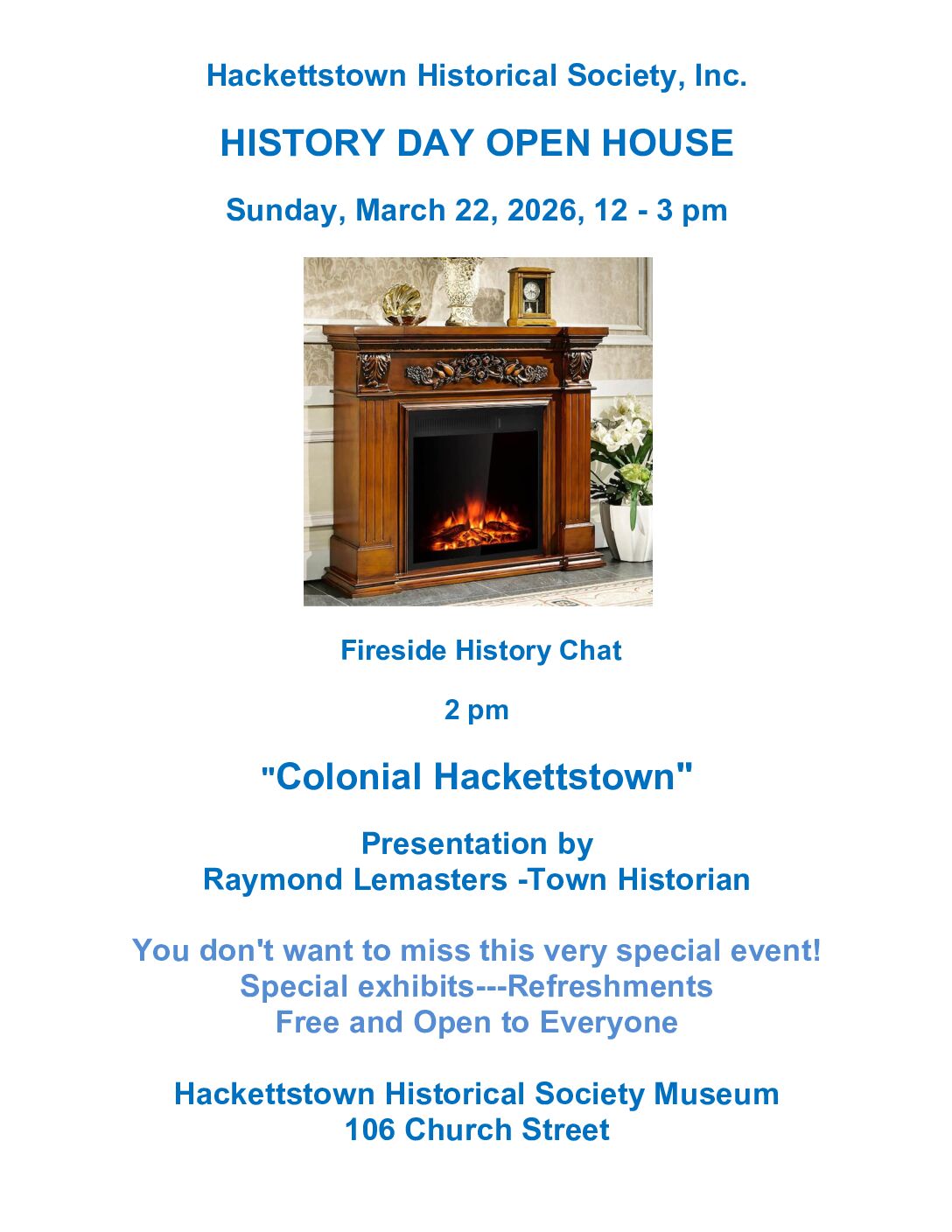 Hackettstown Historical Society, Inc. HISTORY DAY OPEN HOUSE Sunday, March [...]